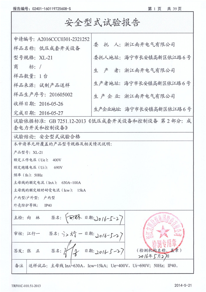 XL-21 630A~100A 试验报告