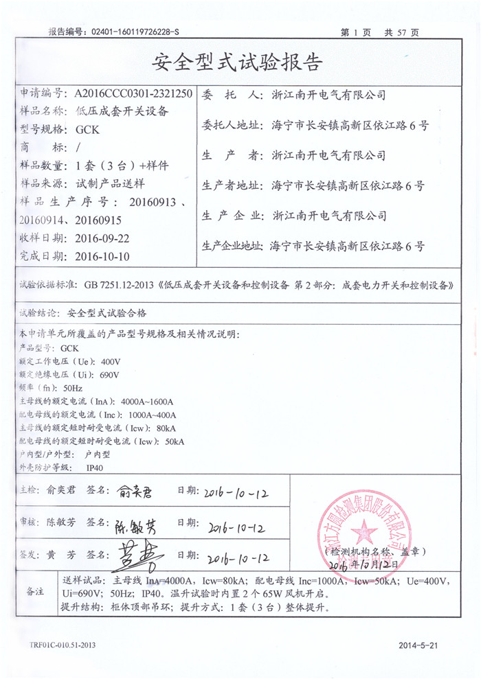 GCK 4000A~1600A 试验报告