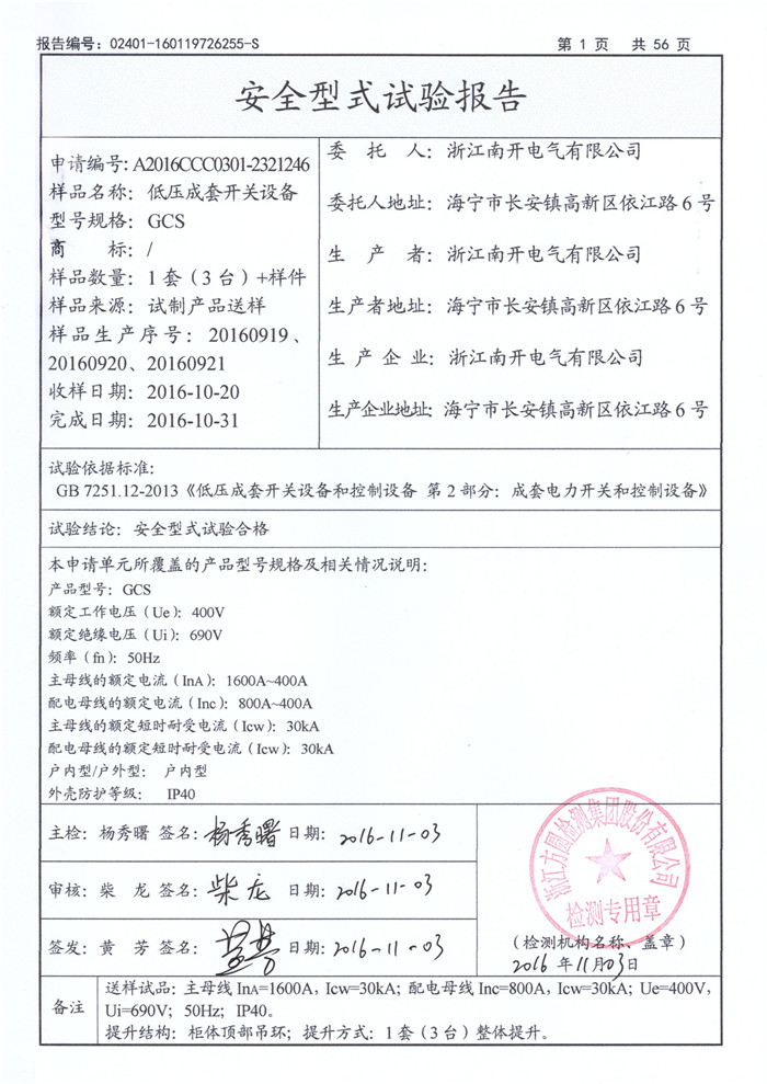 GCS 1600A~400A 试验报告