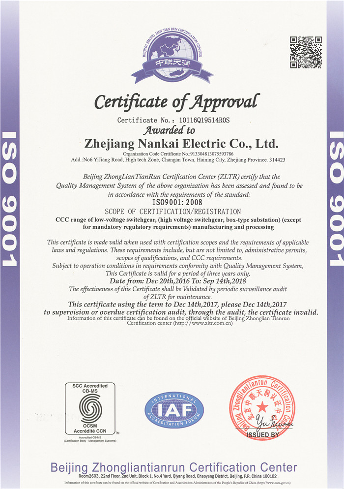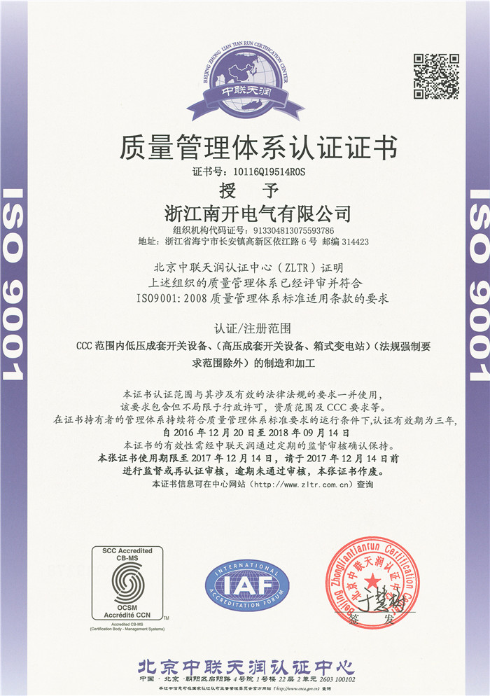 ISO9001质量体系证书